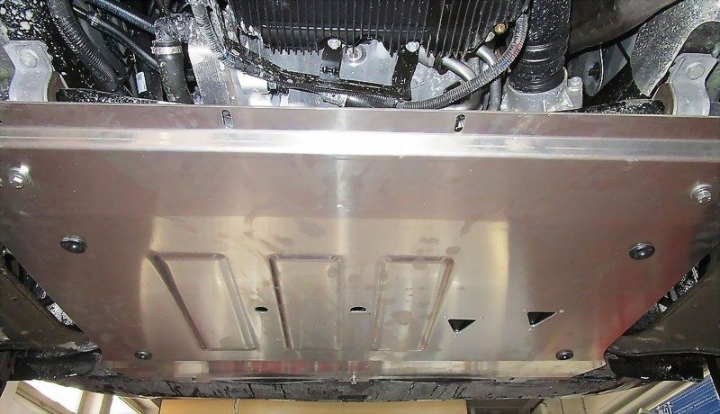 Idealer Schutz für Motor/Getriebe auf unwegsamen Gelände wie Wiesen oder Campingplätzen.